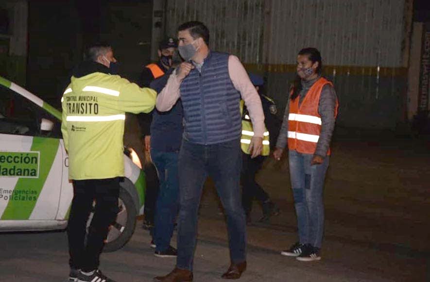 Tras la conferencia en que anunció que se levantaban los controles en los accesos, el intendente Ezequiel Galli se acercó al que se ubicaba en avenida Pringles y, a modo de despedida, saludó a sus trabajadores.