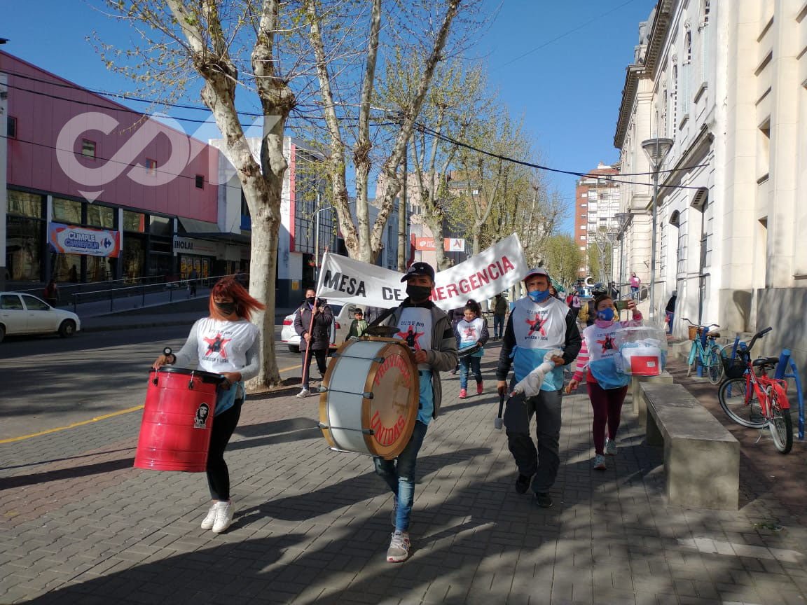 La marcha comenzó cerca de las 9:00 y recorrió las calles que separan al acampe frente al Municipio del recinto de la Sociedad Española, donde se desarrolla una nueva sesión del Concejo Deliberante.
