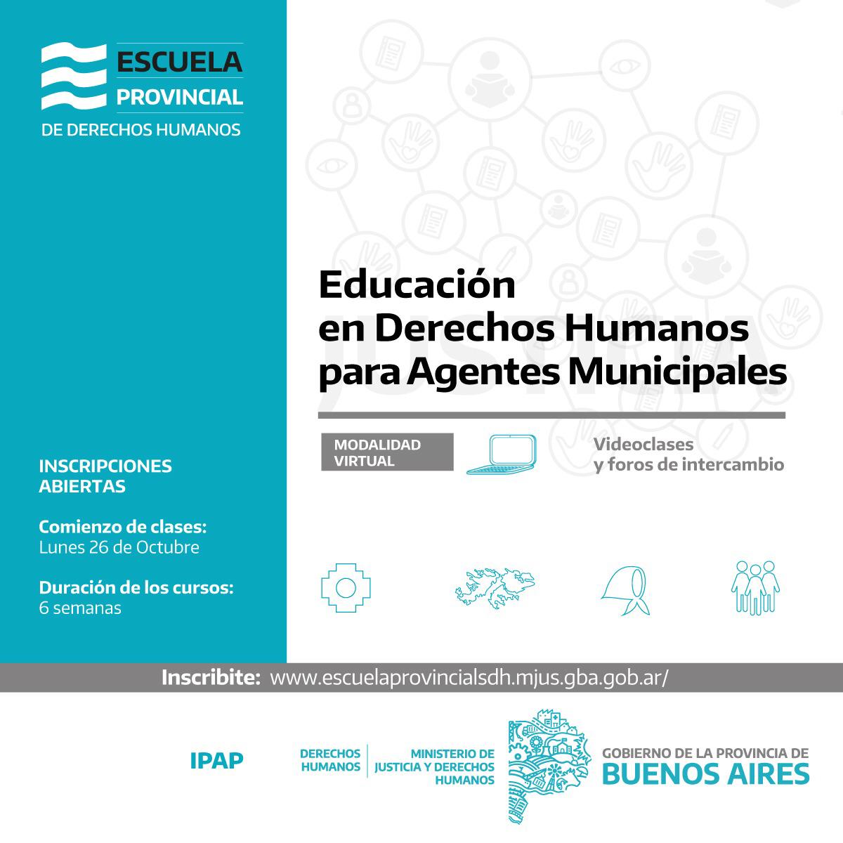 El curso titulado “Educación en Derechos Humanos para Agentes Municipales” será implementado a través de la Escuela Provincial de Derechos Humanos de la Dirección de Promoción y Formación de la subsecretaría, que este mes lanza su tercer trimestre con la incorporación de esta propuesta.