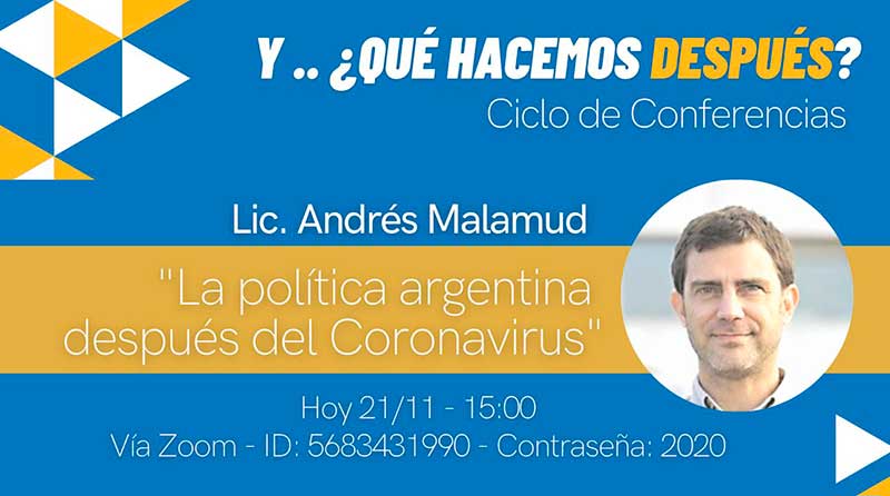 La charla se presentará a través de la plataforma Zoom a partir de las 15. El tema de la charla será “La política argentina después del coronavirus”.