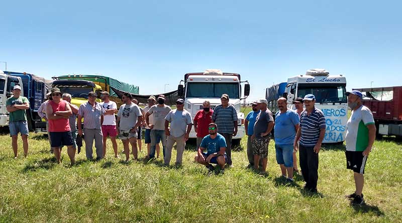 Desde la mañana de este lunes, los propietarios de entre uno y dos camiones se manifiestan en el cruce de las rutas 226 y 51. Los autoconvocados son transportistas de cereal.