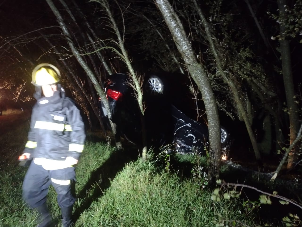 Allí, perdió el control de su auto, un Volkswagen Suran, que se despistó, volcó y terminó adentro de un monte, con el auto completamente destruido.