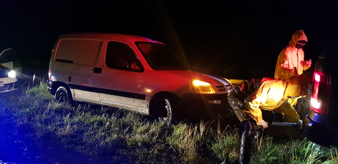 En paralelo, se trabajó durante varios minutos en la ruta 226 para quitar la camioneta de la banquina y normalizar el tránsito en una noche compleja en lo climático.