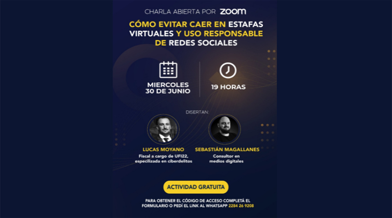 La misma será a través de la plataforma Zoom a partir de las 19 y será encabezada por el fiscal Lucas Moyano, a cargo de la UFI 22, especializada en ciberdelitos y Sebastián Magallanes, quien trabaja como periodista y consultor en medios digitales.