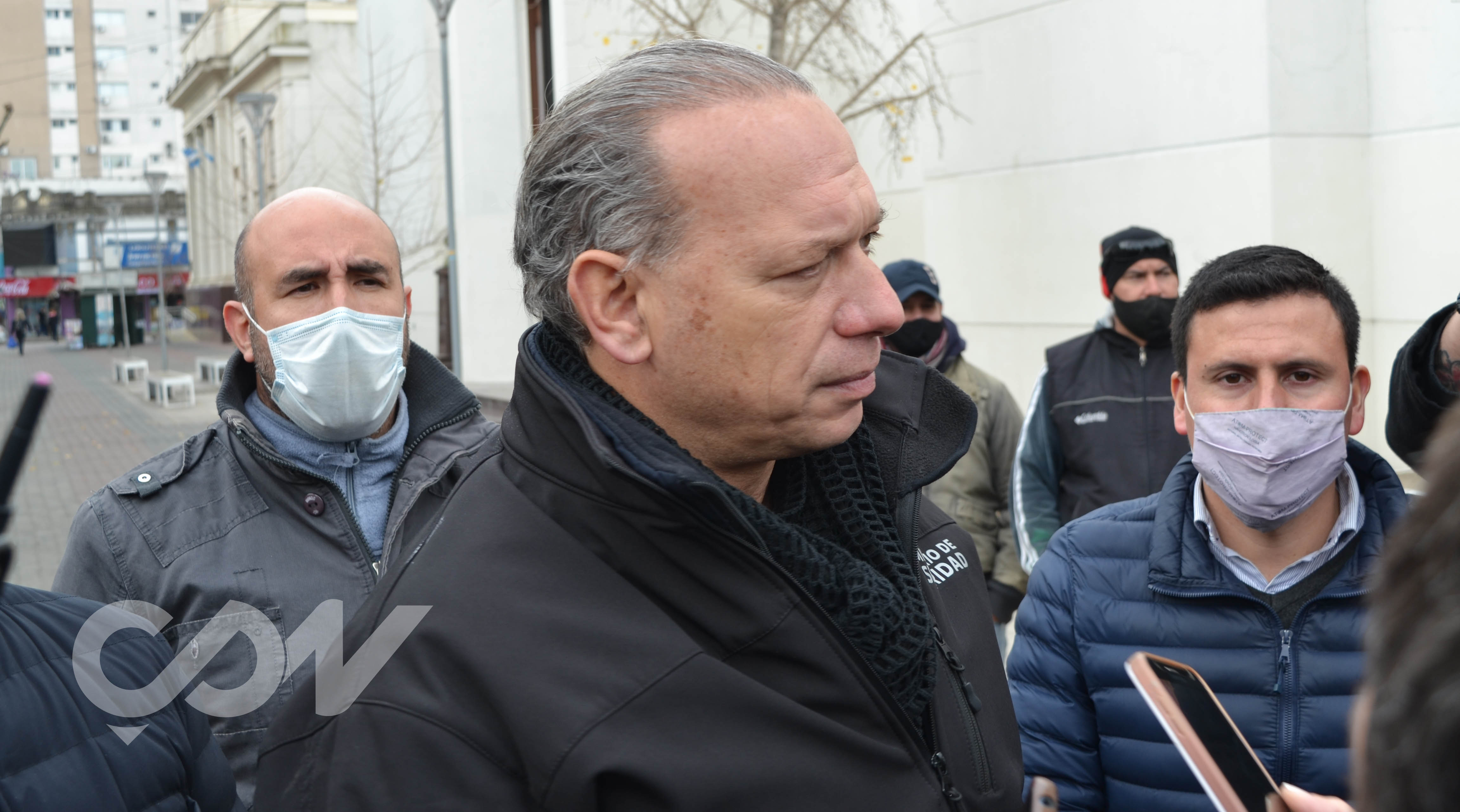 ¿En rol de campaña? El ministro de Seguridad provincial se tomó un tiempo para escuchar a los representantes de trabajadores en su visita a la ciudad.