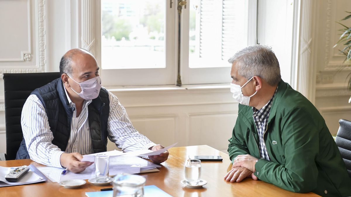 El ministro de Agricultura, Ganadería y Pesca, Julián Domínguez, se reunió en Casa de Gobierno con el flamante jefe de Gabinete, Juan Manzur para hablar sobre las exportaciones de carne, previo al encuentro que mantendrá el martes con los titulares de las entidades que integran la Mesa de Enlace, y que se espera gire en torno a ese tema.