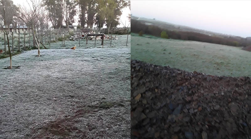 Nueva helada este martes 28, la Primavera está remolona. Una imagen es de La María, Ruta 60, la otra de un lugar indeterminado del partido de #Olavarría. Los oyentes las mandaron al 2284545646 pic.twitter.com/GGT53vF2US