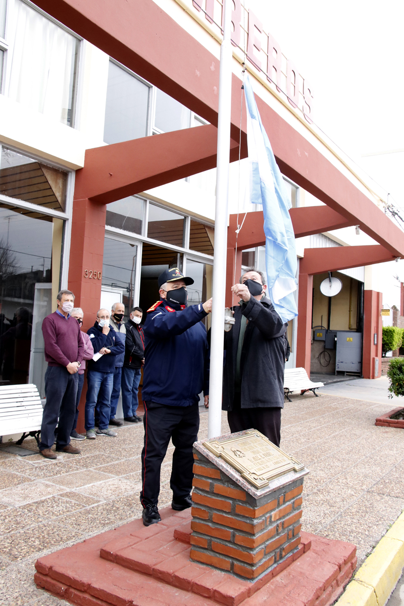 Este sábado a las 8:30 una formación frente al cuartel central de Bomberos Voluntarios, realizó el izamiento de la bandera a cargo del Jefe del Cuerpo Comandante General Raúl Andrés Ferreira acompañado del nuevo presidente Hugo Fayanas, con la presencia de bomberos del cuerpo activo, de la reserva y distintos miembros del consejo directivo.