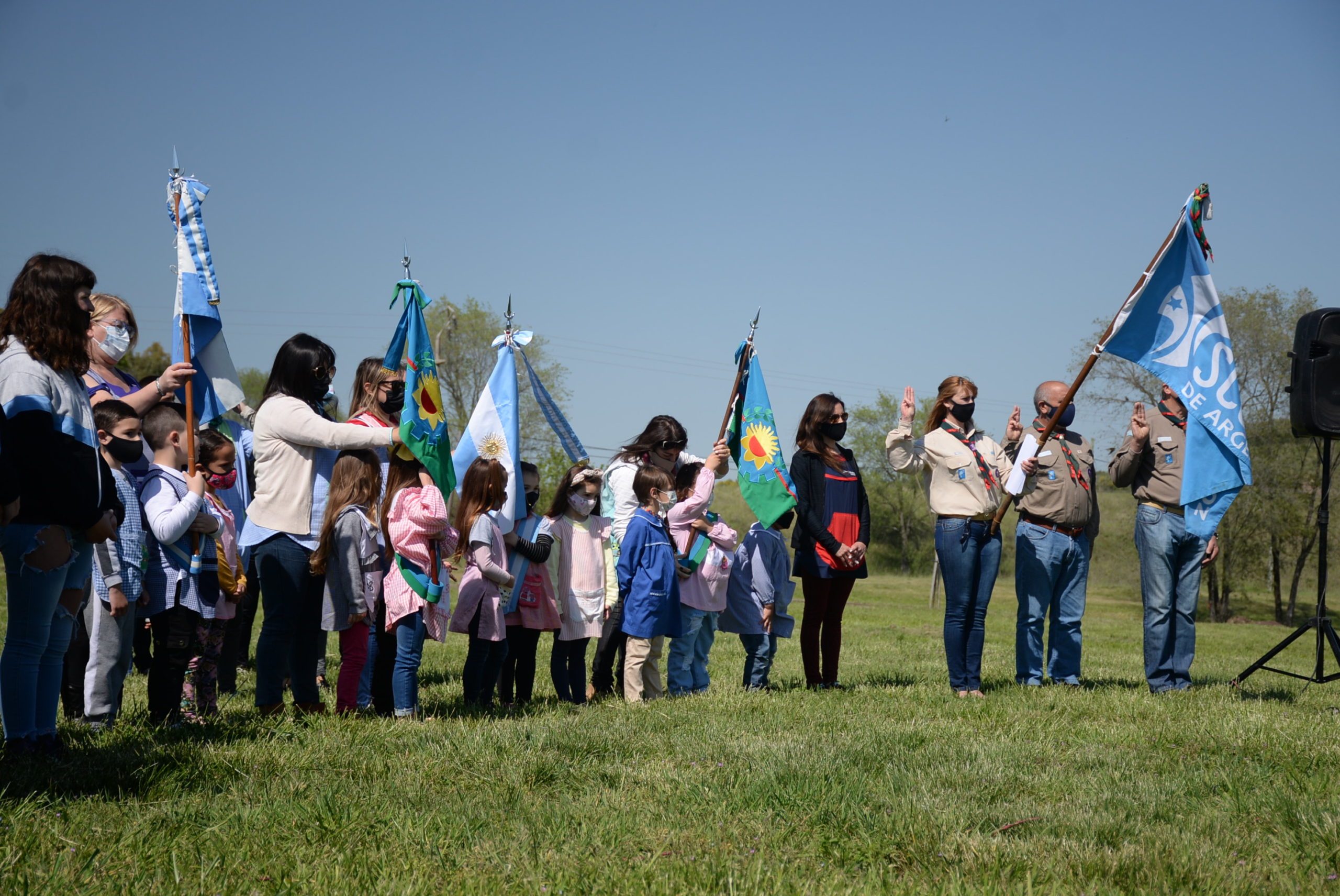También se encontraban presentes abanderados y escoltas de los establecimientos educativos de la comunidad, representantes del grupo de scouts “Cristo Rey”, del Centro de Jubilados “Los Amigos”, Bomberos y Policía.