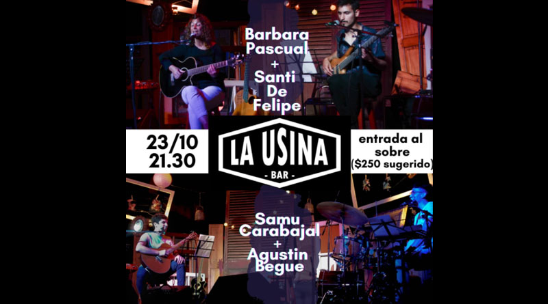 El próximo sábado 23 de octubre a las 21:30 se presentan en La Usina el dúo Samuel Carabajal (batería y voz) y Agustín Begue (guitarra y voz). Además contara con invitados de Las Flores: Barbara Pascual (guitarra y voz) y Santiago De Felipe (bajo y voz).