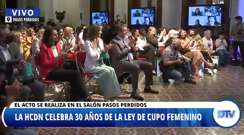 Con un acto en el Salón de los Pasos Perdidos, la Cámara baja, que preside Sergio Massa, conmemoró los 30 años de la Ley de Cupo Femenino. El acto estuvo organizado por la Dirección General de Igualdad, el Departamento de Géneros y Diversidad Sexual, y la Dirección General de Cultura, y contó con la participación de las protagonistas de aquel hito legislativo.