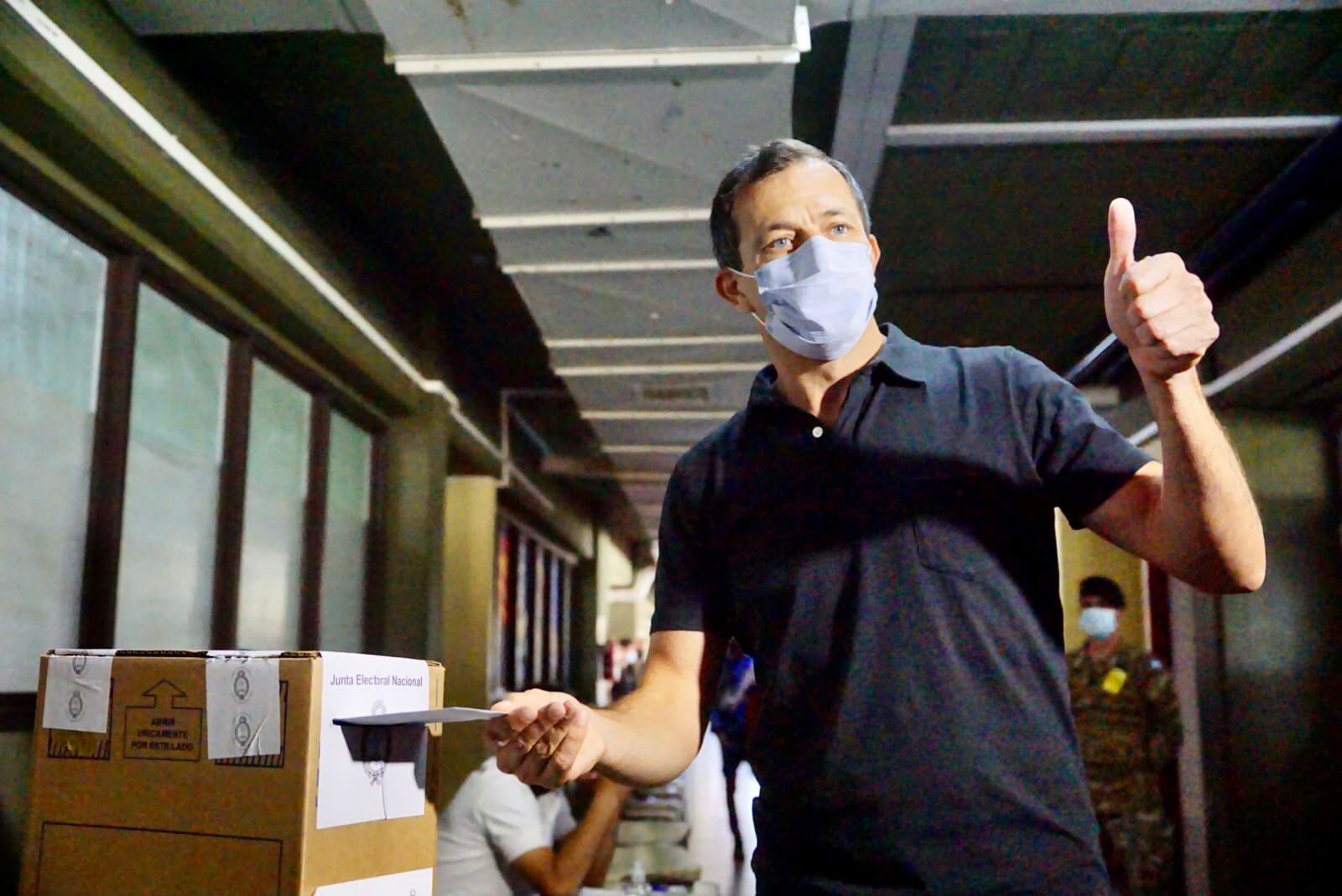 Alrededor de las 10:00 el candidato a senador provincial se acercó al ex Colegio Nacional, actual Escuela de Educación Media 204 para emitir su voto.