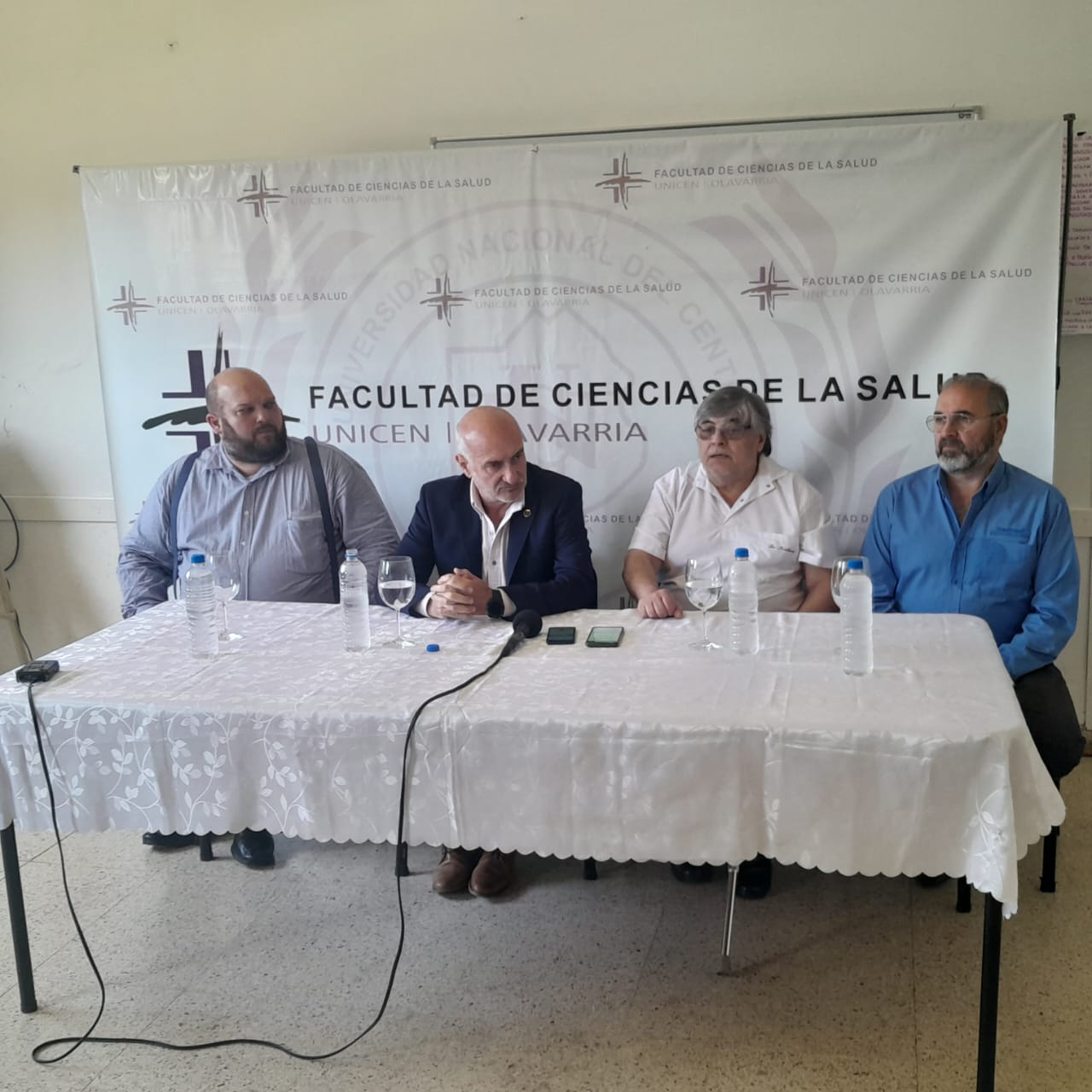 En el acto estuvieron presentes el decano de la Facultad de Ciencias de la Salud de la Unicen, Héctor Trebucq, el Director Médico de la Gaumard Scientific Dr. Mario de las Cuevas, el rector de la Universidad Nacional del Centro Dr. Marcelo Alfredo Aba y el Gerente de Ventas de Syncrotech SRL Javier Gómez.