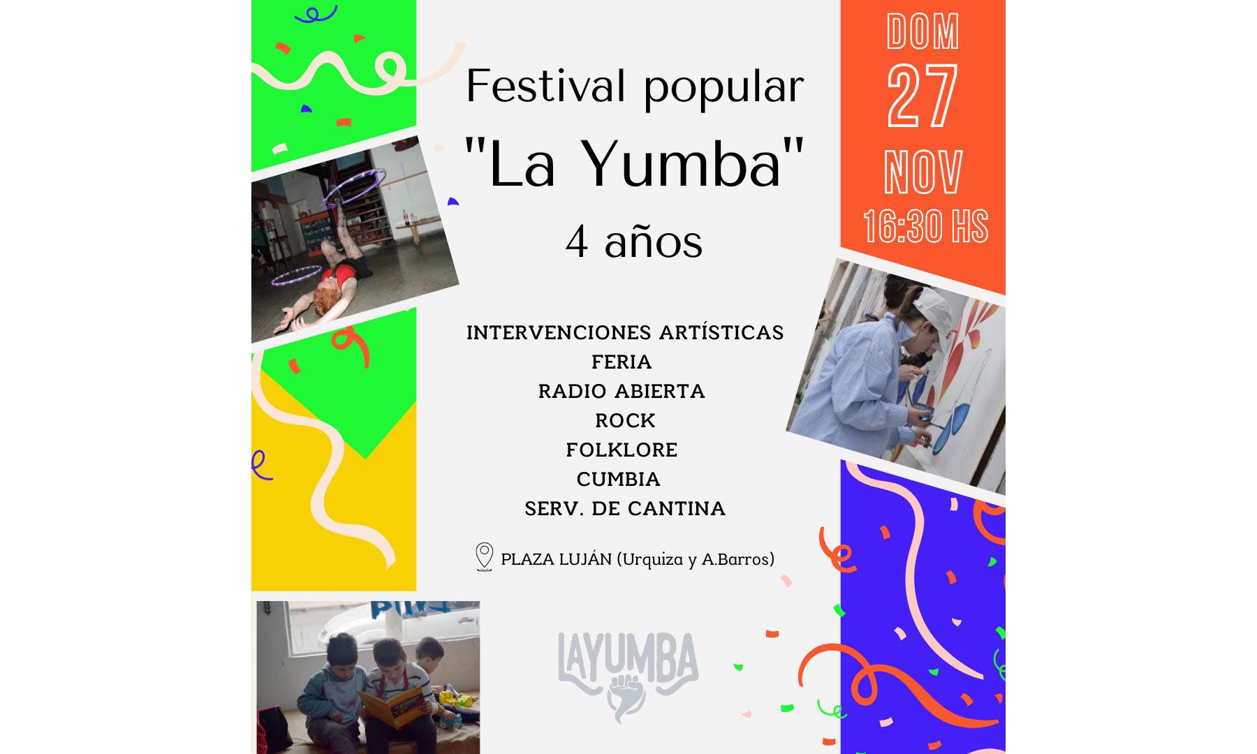 El festejo por el cumpleaños de La Yumba se realizará este domingo 27 de noviembre a partir de las 16:30 en la plaza del barrio Lujan (Av. Urquiza y A. Barros).