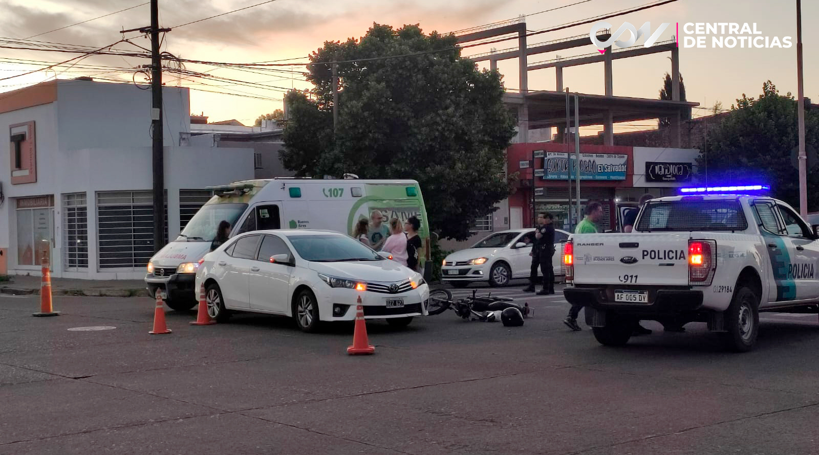 En la tarde de este viernes, un joven motociclista resultó con heridas tras chocar con un auto en avenida Colón en su cruce con calle Vicente López.