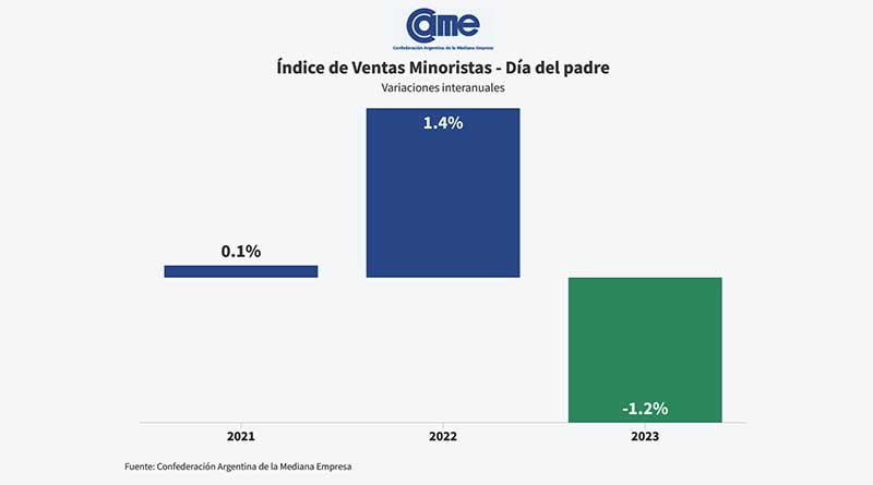 La Confederación Argentina de la Mediana Empresa (CAME) difundió el resultado del relevamiento por las ventas del Día del Padre 2023 realizado en 245 comercios del país.