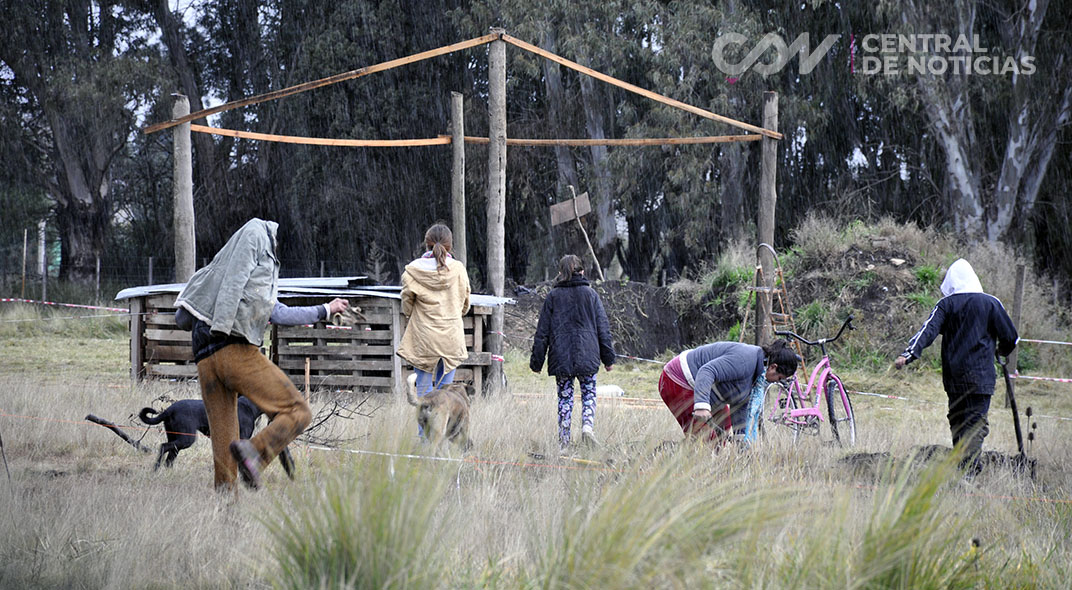 Central de Noticias pudo confirmar que hay actuaciones policiales por “usurpación”, las cuales se sumaron a un expediente penal iniciado en abril por el mismo caso. Este sábado en el sector se observaron unas 20 personas, adultos y niños, una construcción precaria armada y, además, herramientas tanto de construcción como de limpieza de terrenos.