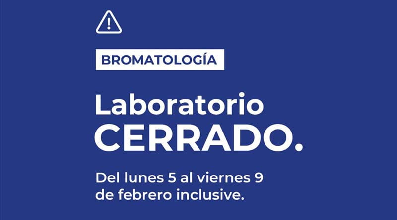 Desde la Dirección de Bromatología se informó que el Laboratorio de análisis fisicoquímicos permanecerá cerrado.