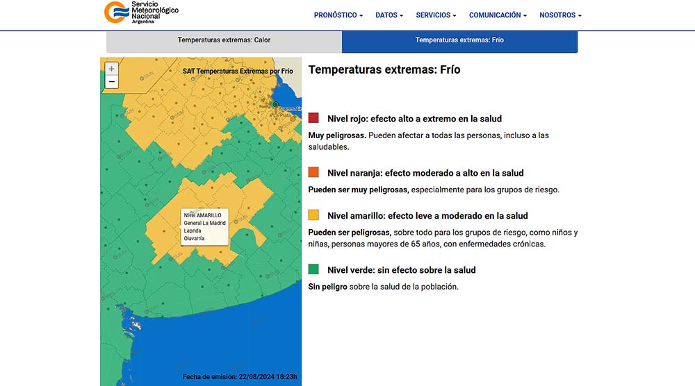 Sigue la “ola polar” que alcanza a la provincia de Buenos Aires y este viernes, las regiones centro y norte bonaerenses quedaron incluidas en el alerta amarillo por “temperaturas extremas” emitido por el Servicio Meteorológico Nacional.
