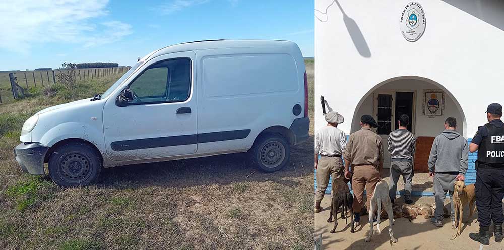 Los efectivos llegaron este domingo al lugar a raíz de un llamado al 911. Fueron hallados cuatro hombres que cazaban en el interior del campo sin autorización del propietario, utilizando perros galgos y que viajaban a bordo de un vehículo utilitario. Asimismo se estableció que tenían seis liebres que habían cazado, piezas que fueron incautadas.