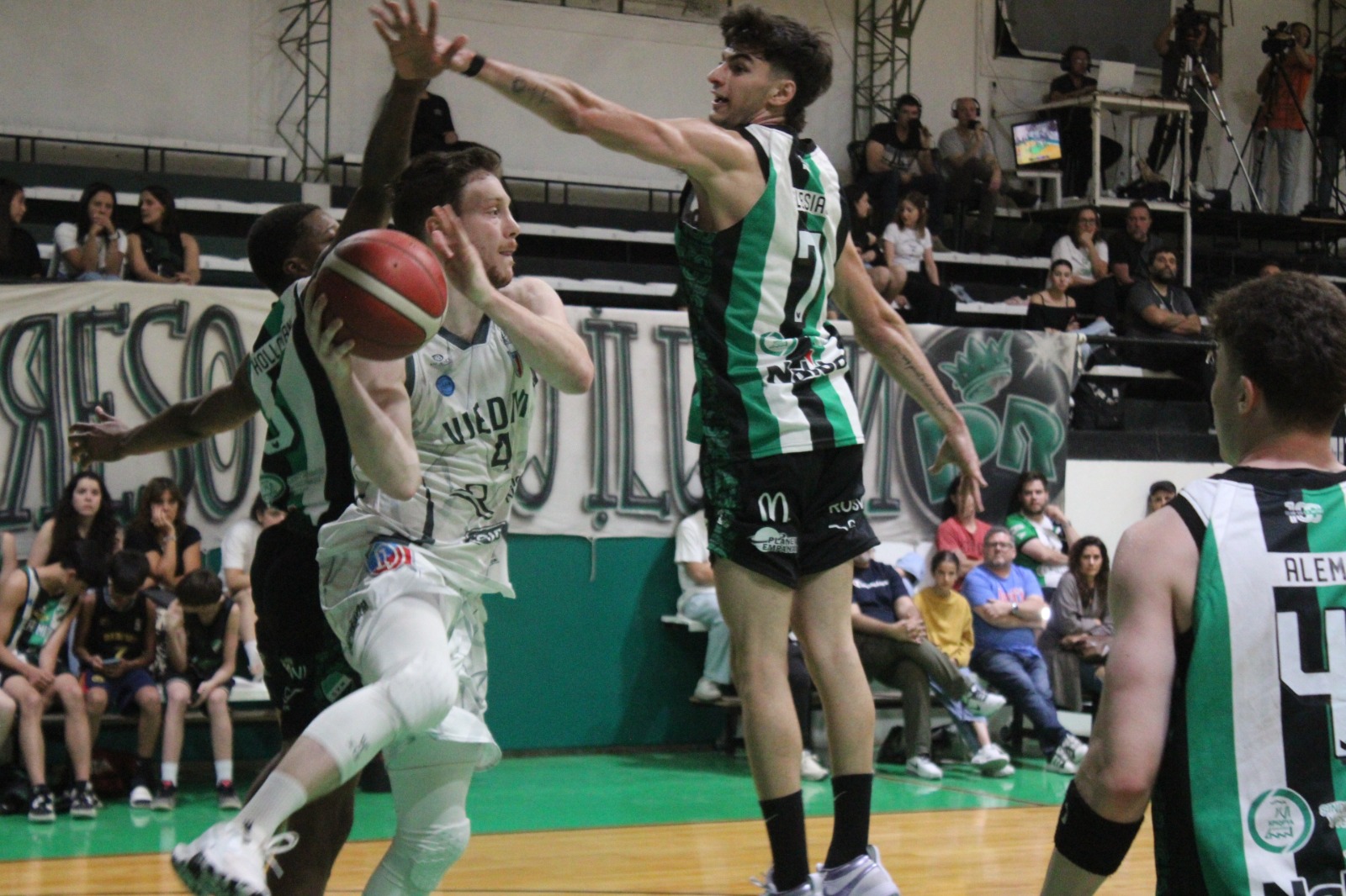 Tras el descanso, Deportivo Viedma salió con una estrategia renovada. Liderados por un encendido Mariano Marina, lograron imponerse en las transiciones y, con un triple clave, pasaron al frente por primera vez en la noche (62-63). Al finalizar el tercer cuarto, los rionegrinos lograron una leve ventaja de 65 a 68 (parcial 16-28) que parecía que inclinaba la balanza.