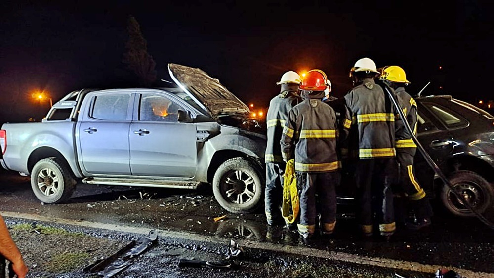 Este jueves una camioneta Ford Ranger y un Volkswagen Gol chocaron de frente, por causas que se intentan determinar, a la altura del kilómetro 397 de la Ruta Nacional 226, a tres kilómetros del acceso a la ciudad de Bolívar.