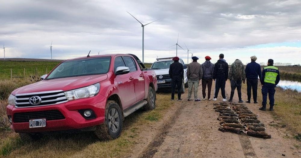 Los involucrados, de 25, 22, 19, 19, 29 y 28 años, se movilizaban en una camioneta Toyota Hilux. Se labraron actuaciones por infracción a los artículos 265, 266, 268, 272, 273 incisos A, E y K, 274 y 287 de la Ley 10.081/83 (Código Rural).
