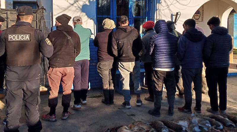 De acuerdo con lo informado, los demorados —de entre 27 y 46 años— fueron sorprendidos realizando caza furtiva con 16 perros galgos, sin autorización y sin licencia de caza. En su poder tenían 22 liebres europeas muertas.