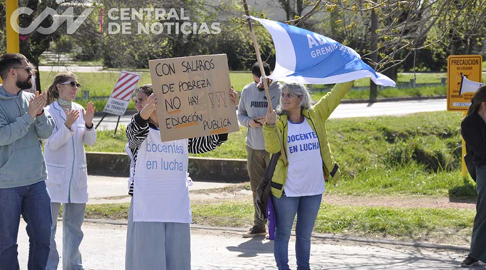 En ese punto se sumaron docentes, no docentes, representantes sindicales de ambos sectores, estudiantes y estuvo también el decano de la Facultad de Ciencias Sociales, Gustavo Flensborg. Muchos de los vehículos que ocasionalmente transitaban por el sector apoyaron mediante bocinazos y también es escuchó un apoyo de estudiantes de la Escuela Técnica Nº 2, ubicada en ese mismo sector, quienes se ubicaron en el acceso al edificio principal con instrumentos de percusión y sirenas.