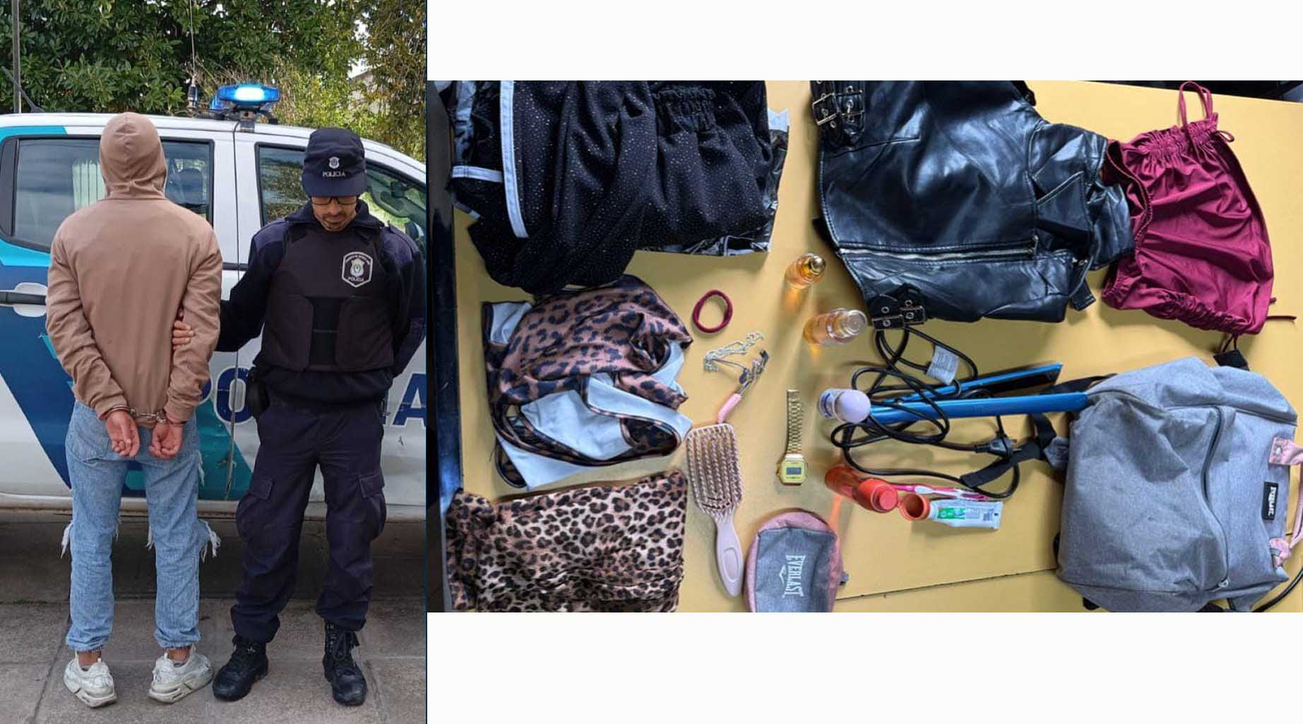 Entre los elementos recuperados se encuentran una mochila con artículos de higiene personal, un reloj, una cadena de bijouterie, una plancha de pelo, varias prendas de vestir entre ellas una campera y documentación personal.
