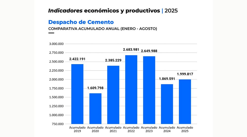 En el mes agosto el despacho de cemento cayó casi 6%