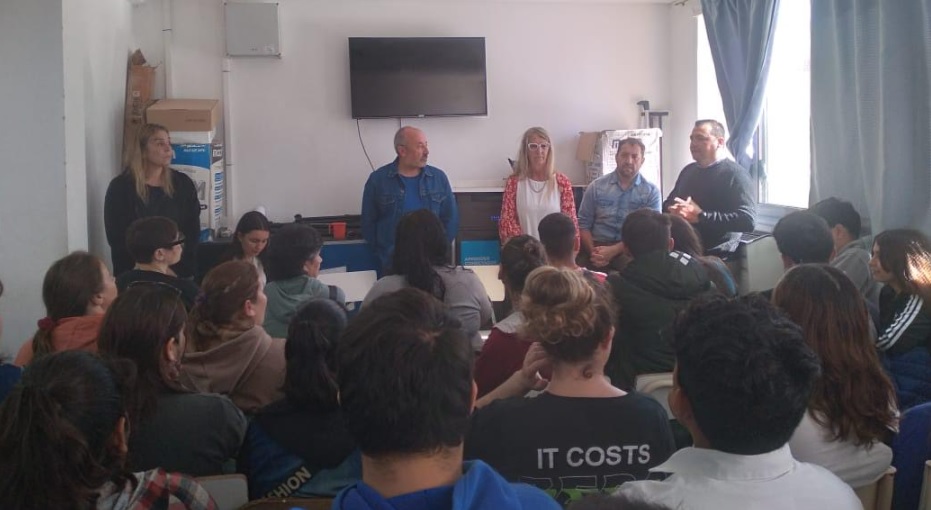 Este viernes, la jefa regional Marta Casanella, el jefe distrital Julio Benítez, la directora de la Escuela Secundaria N°20 María Brizuela, el presidente del Consejo Escolar Ariel Rodríguez y el subsecretario de Protección Ciudadana del Municipio, Elías Quintas, participaron de un encuentro con estudiantes y sus familias.