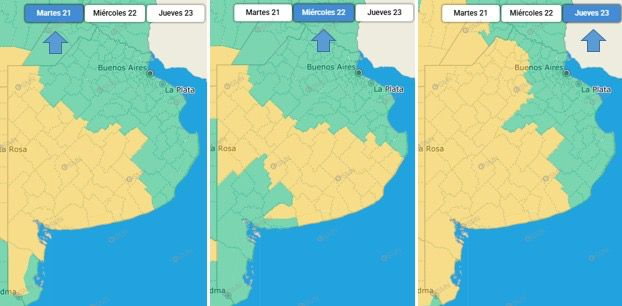 Según el parte, el fenómeno comenzará durante la noche del martes (18:00 a 24:00 hs), continuará en la madrugada del miércoles (00:00 a 06:00 hs) y se reactivará la noche del jueves (18:00 a 24:00 hs).