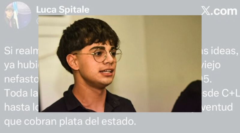 “Es un viejo nefasto que cobra del Estado desde el 2005” dijo Luca Spitale, un referente en los jóvenes del espacio libertario en Olavarría. Lo criticó duramente en redes sociales.