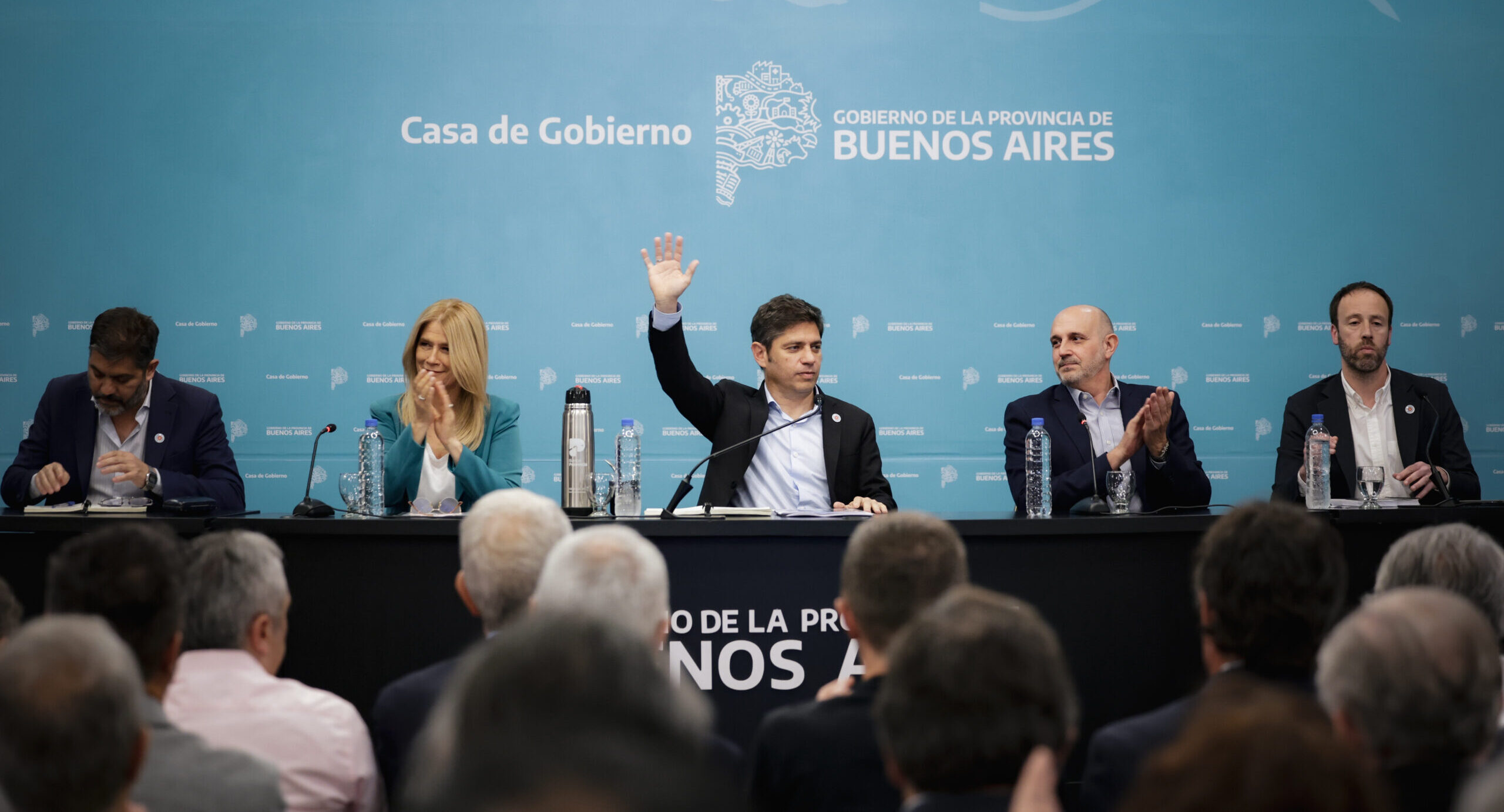 El gobernador Axel Kicillof presentó este lunes los proyectos de leyes de Presupuesto 2026, Impositiva y Financiamiento. Fue en el Salón Dorado, acompañado por la vicegobernadora Verónica Magario; el ministro de Economía, Pablo López; el ministro de Gobierno, Carlos Bianco; y el presidente de la Cámara de Diputados bonaerense, Alexis Guerrera.