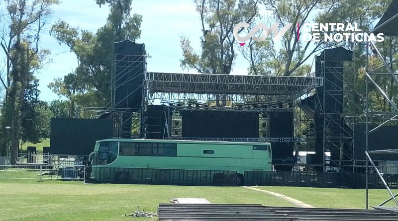 El gran escenario ya fue montado en la tradicional locación para la festividad aniversario. Además, fue colocado el vallado y delimitados los sectores. El cierre será con Los Totora en la noche del lunes.