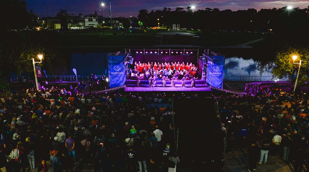 En un escenario desplegado a la vera del arroyo Tapalqué se llevaron a cabo las presentaciones de la Orquesta Escuela Municipal, la Banda Escuela Municipal “Hugo Bazzano” y la presentación de la Orquesta Sinfónica Municipal “Mtro. Mario Patané”, dirigida por el mtro. Diego Lurbe, y acompañada por Valentina Fernández y Agustín Begue en voz, el Ballet Folklórico Municipal y el Coro Estable de Tandil.