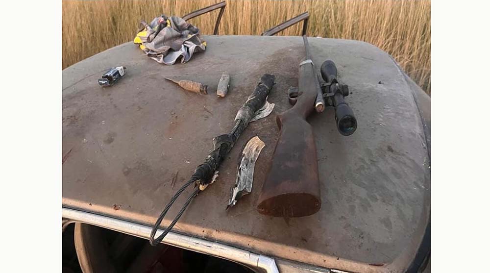 Finalmente, el rodado fue interceptado en cercanías del camino a Crotto, donde se identificó a sus ocupantes. En su poder se secuestró una carabina calibre 22 largo con mira telescópica y cargador con seis municiones intactas, una caja de municiones del mismo calibre con proyectiles intactos, un cuchillo, un elemento casero confeccionado con cable de acero envuelto en goma negra y alambre, un elemento de corte tipo cúter y el automóvil en el que se desplazaban.
