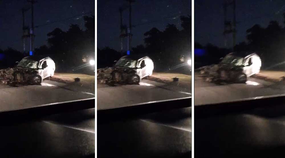 Se trata de un VW Gol que, según se estimó, chocó primero con un poste y luego contra una pared de piedras de la sierra que delimita el camino de acceso.