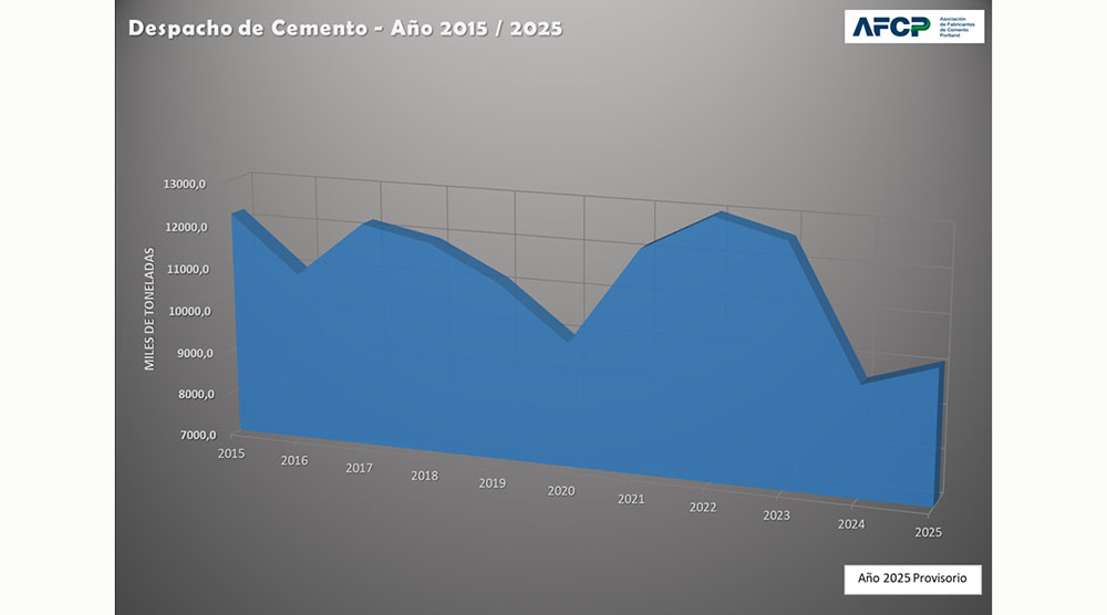 A lo largo del todo el año pasado el despacho alcanzó 10.088.508 toneladas. De esa manera, el cierre de 2025 superó en 5,6% el total de 2024, cuando se habían despachado poco más de 9,5 millones de toneladas de cemento.