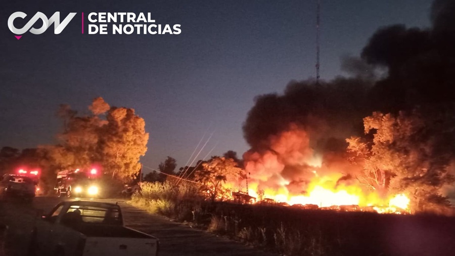 Trabajaron en el lugar tres dotaciones de bomberos, personal policial y defensa civil.  El hecho ocurrió en calle 118 y las vías donde se vieron columnas de fuego de más de 12 metros y se escucharon muchas explosiones en el lugar.