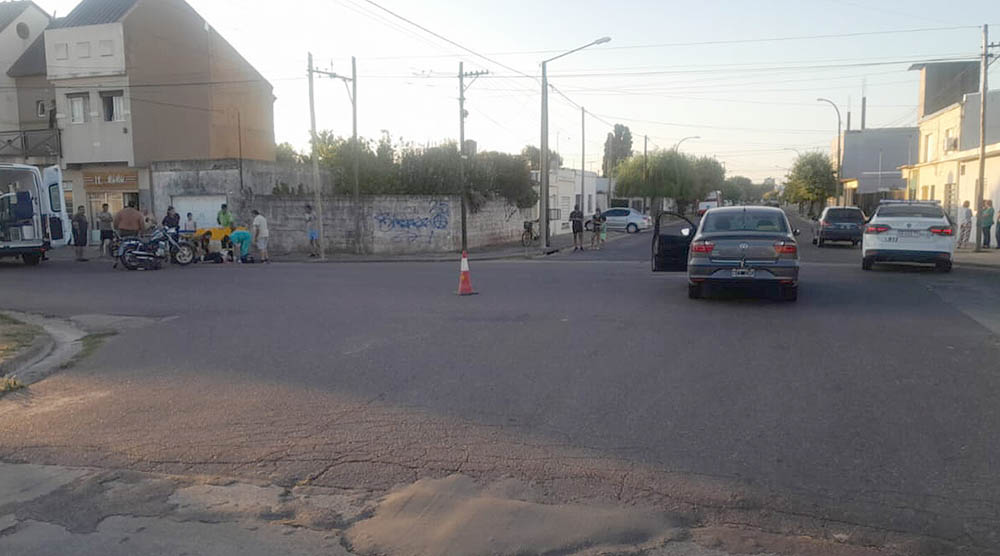 Un Volkswagen Voyage colisionó con una motocicleta Zanella Patagonian. Como consecuencia del impacto, el conductor del rodado menor debió ser asistido por una ambulancia y trasladado al Hospital Municipal.