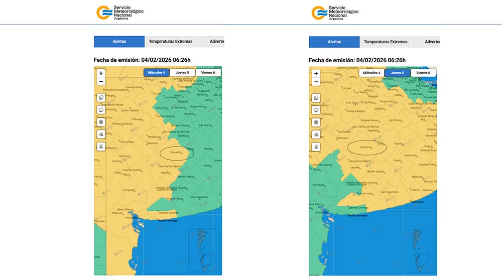 En el caso de Olavarría, la alerta es para la noche del miércoles y la madrugada del jueves. “El área será afectada por tormentas de variada intensidad, algunas localmente fuertes. Las mismas estarán acompañadas principalmente por lluvias abundantes en cortos períodos, frecuente actividad eléctrica, granizo, y ráfagas intensas que pueden alcanzar los 75 km/h. Se prevén valores acumulados entre 20 y 50 mm, pudiendo ser superados de manera puntual” se indicó.