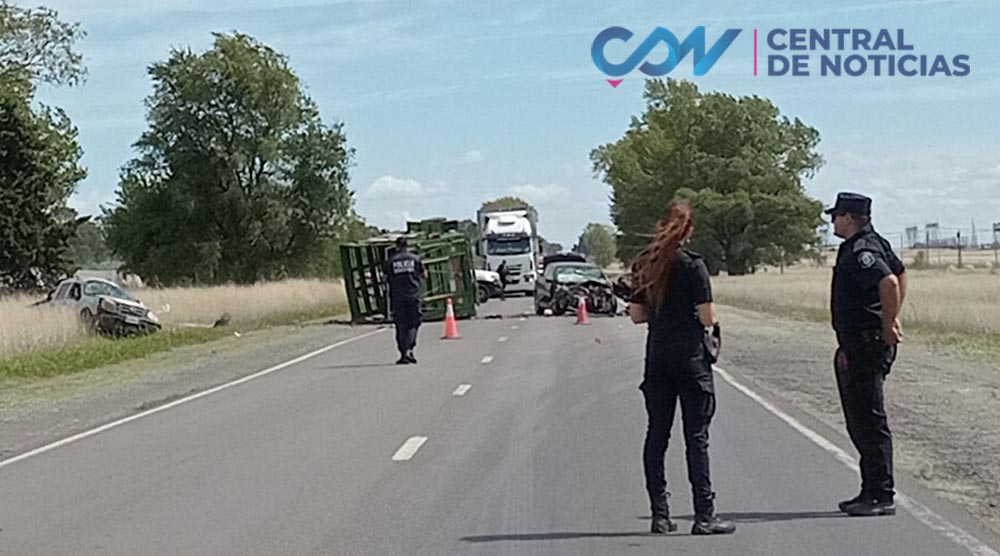 Se trató de un Toyota Corolla y Ford Ranger, al que llevaba el carro en el que iban tres caballos. El auto chocó de manera frontal y quedó sobre la ruta. En tanto, la camioneta mostraba daños en el lateral izquierdo y se detuvo sobre la banquina. El carro quedó volcado también sobre la ruta.