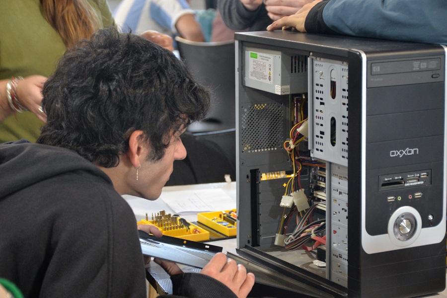 En este sentido, docentes y alumnos del C.F.P. N° 401, la E.E.S.T. N° 2, la E.P.S. N° 4 y la E.E.S. N° 3 participaron en esta jornada realizando un trabajo de identificación, clasificación y selección de equipos con potencial de reparación o reutilización.