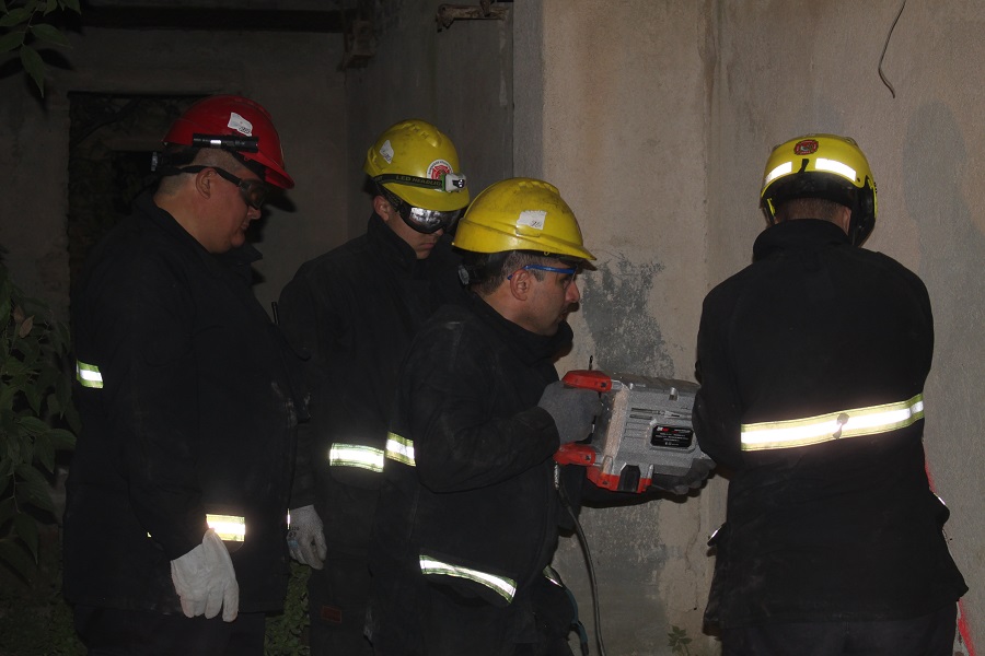 La actividad se desarrolló en una vivienda/estructura abandonada perteneciente al predio de una cantera, escenario que permitió recrear condiciones reales de intervención en espacios reducidos y de difícil acceso. Durante la jornada se trabajó en técnicas de ingreso seguro, evaluación de riesgos, desplazamiento en lugares confinados y extracción de posibles víctimas.