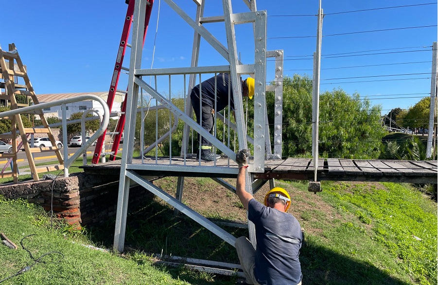 También ya se han llevado a cabo trabajos de puesta en valor del puente colgante de calle San Martín, donde se realizaron trabajos de pintura y mantenimiento tanto sobre barandas como en la estructura en sí.
