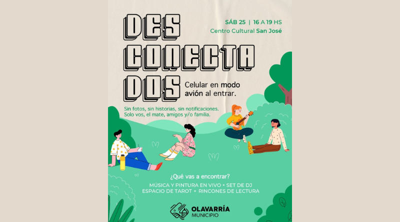 El Municipio de Olavarría, a través de la Subsecretaría de Cultura, invita a la comunidad a participar de “Desconectados”, una propuesta cultural que se desarrollará el próximo sábado en el Centro Cultural Municipal “San José”, en el horario de 16 a 19 horas, con entrada libre y gratuita.